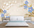 999Store 3D Blue Flowers and Golden Leaves Wallpaper ,Wallpaper296