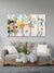 Each frame is of 61x20 Cms and Total is 61x 101.6 Cms. Thickness of the wooden frame is 7mm. You need to give some space in all the frames so that picture gets aligned properly Framed art prints wall hanging...